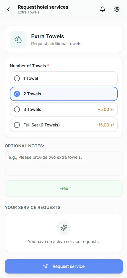 Order room service, request housekeeping, chat with reception, and more.